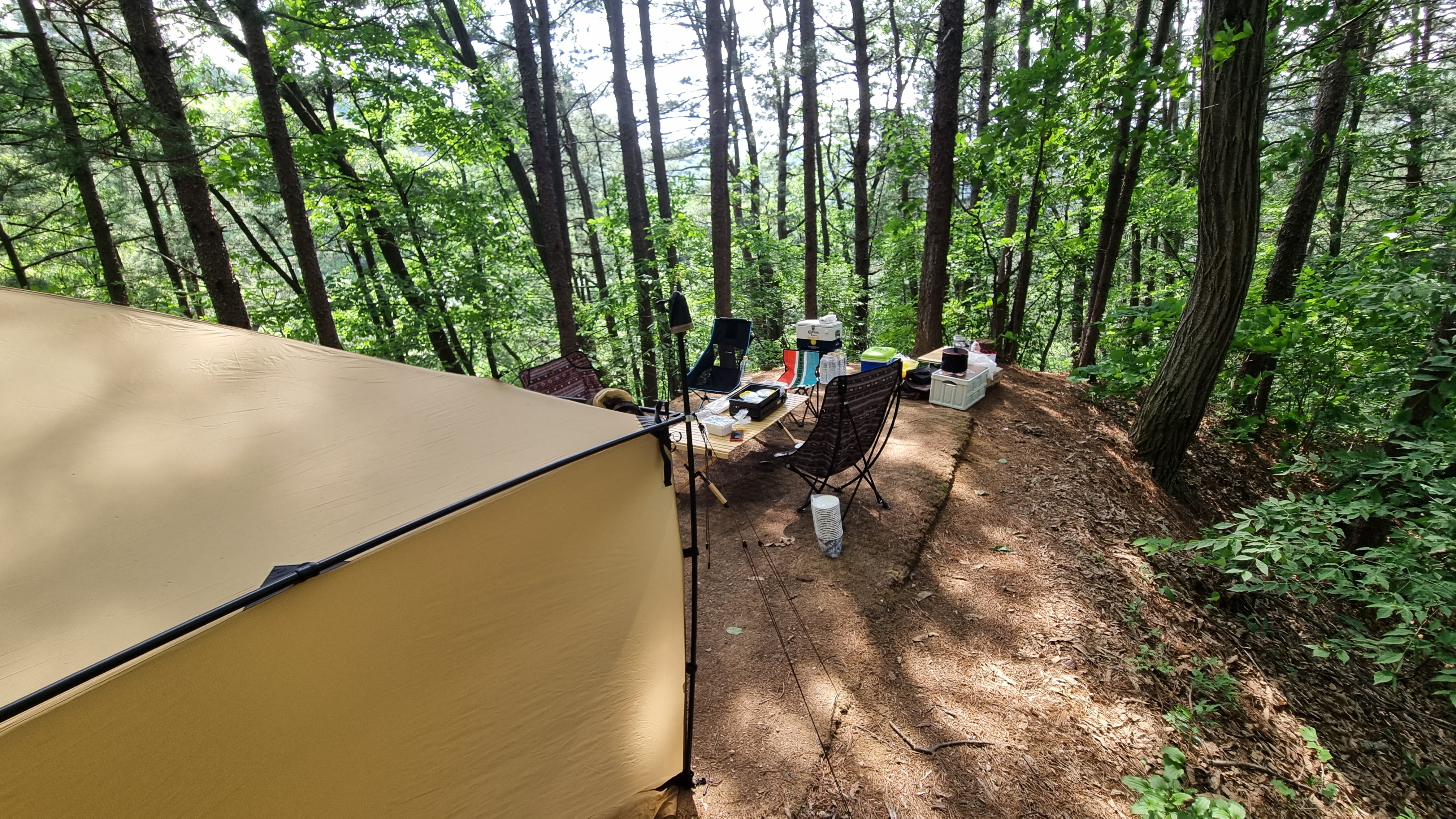 우리는 ‘바람의 언덕’이라는 사이트를 선택했는데, 숲속 언덕 위에 위치한 사이트로 경치와 조용함이 인상적이었습니다.