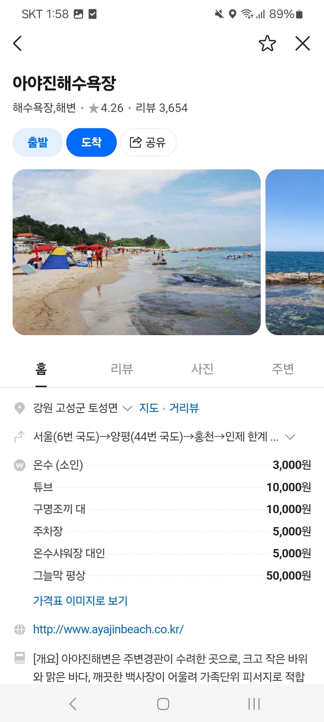 네비게이션에 '아야진 해수욕장'이라고 검색하면 누구나 쉽게 찾아 올 수 있어요. 그래도 아야진 해변 주소도 함께 남겨드립니다.