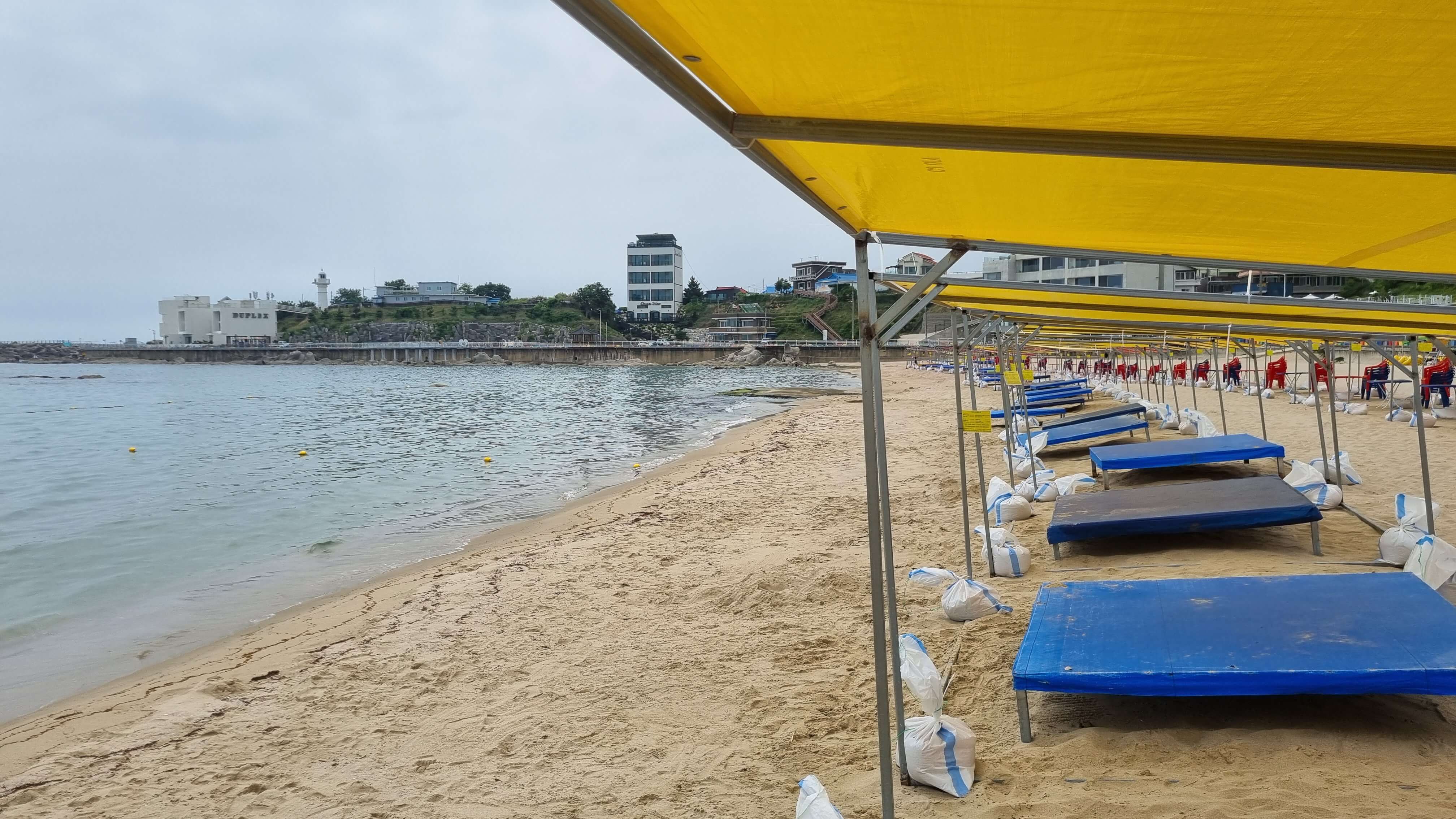 아야진 해수욕장은 이미 6월달에 개장을 했습니다. 그래서 주말이되면 벌써부터 사람들이 많이 몰려온다고 하는데, 다행히 저희는 7월 초 평일이라 많이 한산했어요. 오전 11시 전에 방문했는데, 이미 와서 놀고있는 팀은 몇 안되었어요. 그래도 이제 점점 여름 성수기가 다가오니 오전 일찍 방문해서 미리 좋은 자리를 잡는 것을 추천드립니다. 그늘막 평상은 기본 하루 렌트이고 가격은 5만원 입니다. 자리를 잡으면 관리인 분이 알아서 찾아 오시는데, 계좌이체도 물론 가능합니다^^