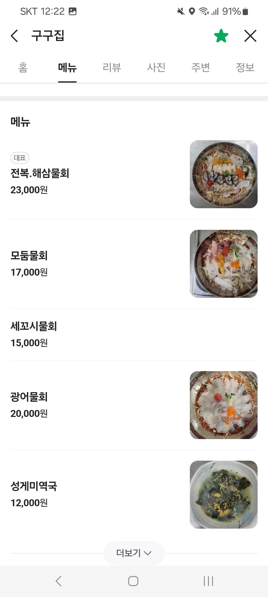사진에 나와있는 메뉴 외에도 생선회 메뉴부터 오징어 순대까지 다양하게 있어요.