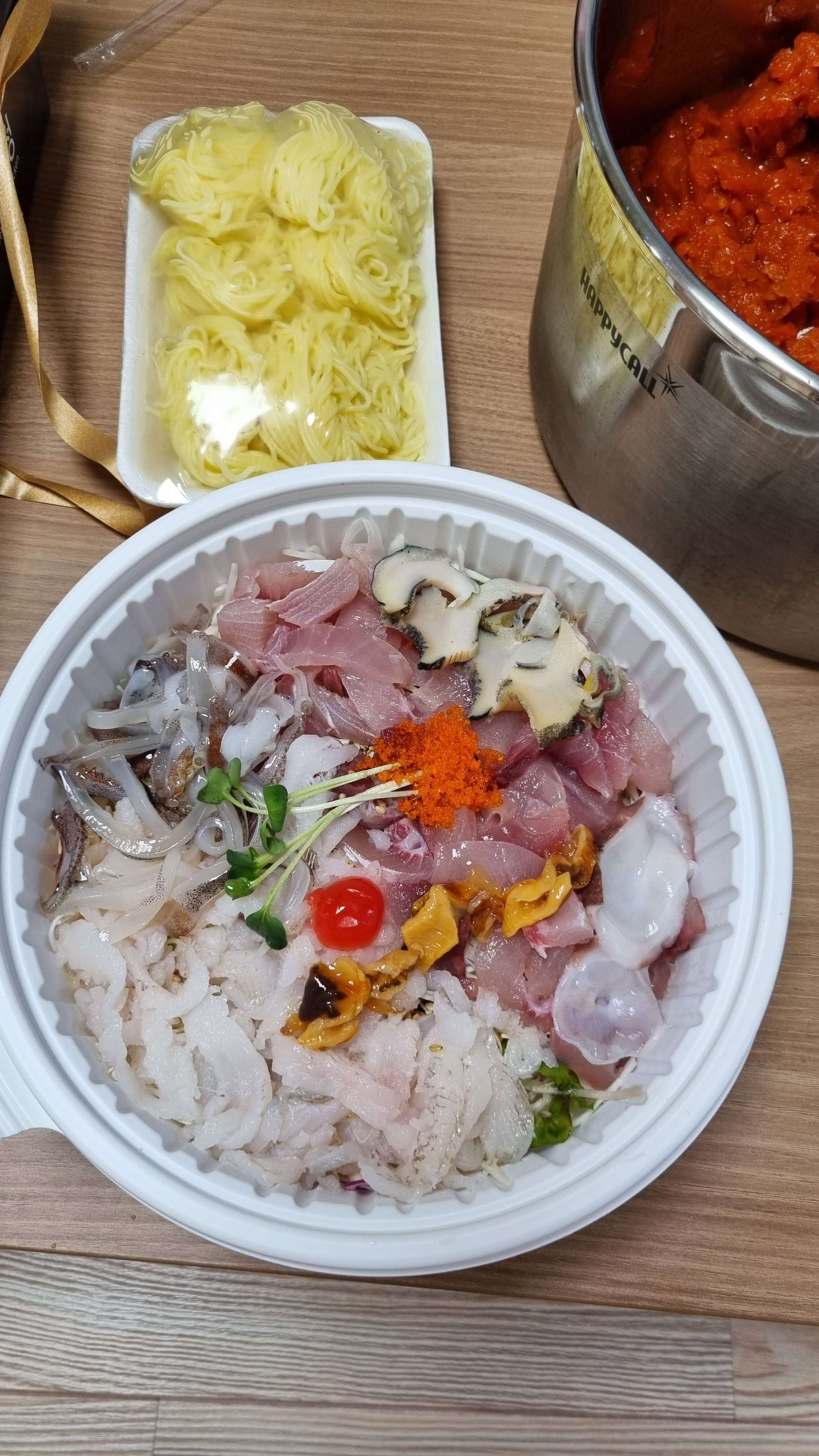 모듬 물회 2인분을 포장해왔는데, 양이 진짜 많아요. 성인 5명이서 적당히 잘 나눠 먹었습니다. 그리고 무엇보다 구구집 물회가 맛있다고 느낀건 적당히 칼칼하고 매운 국물소스예요. 왜 속초 현지인들이 많이 찾는지 알겠더라구요. 여러분들도 강원도에 여행 오신다면 꼭 '구구집' 물회를 드셔보세요.