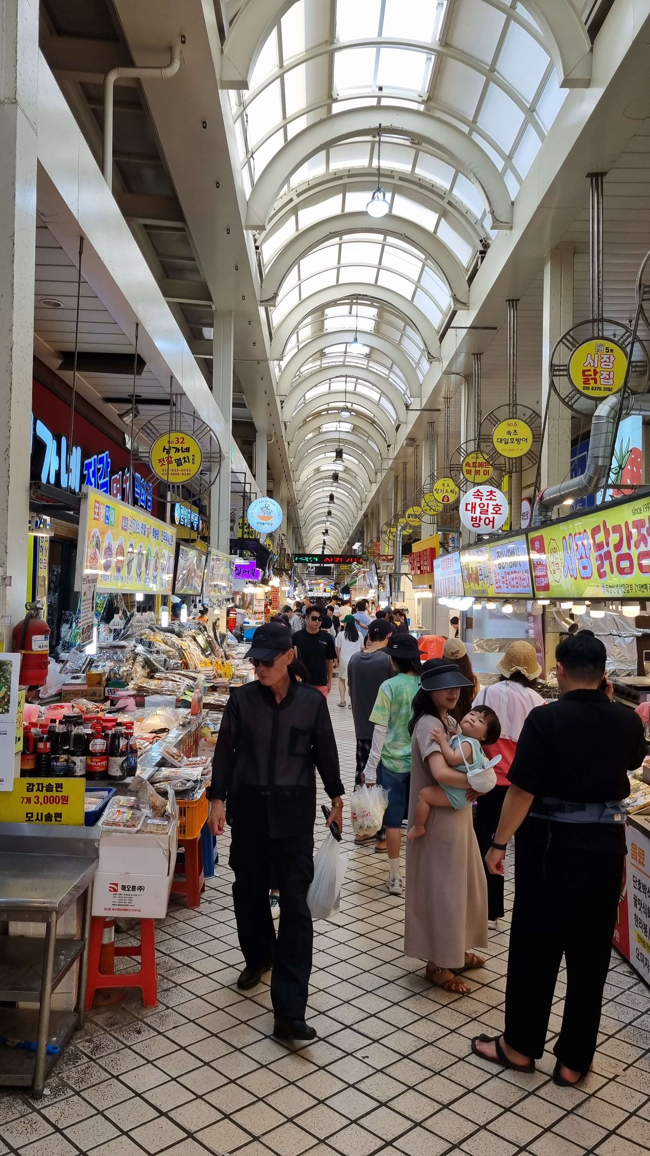 속초 중앙시장은 다양한 먹거리와 특산물로 가득한 대표 전통시장입니다. 가장 유명한 만석닭강정을 비롯해 해산물, 건어물, 튀김, 순대 등 다양한 음식들이 줄지어 있어 관광객과 현지인 모두에게 인기가 많습니다.