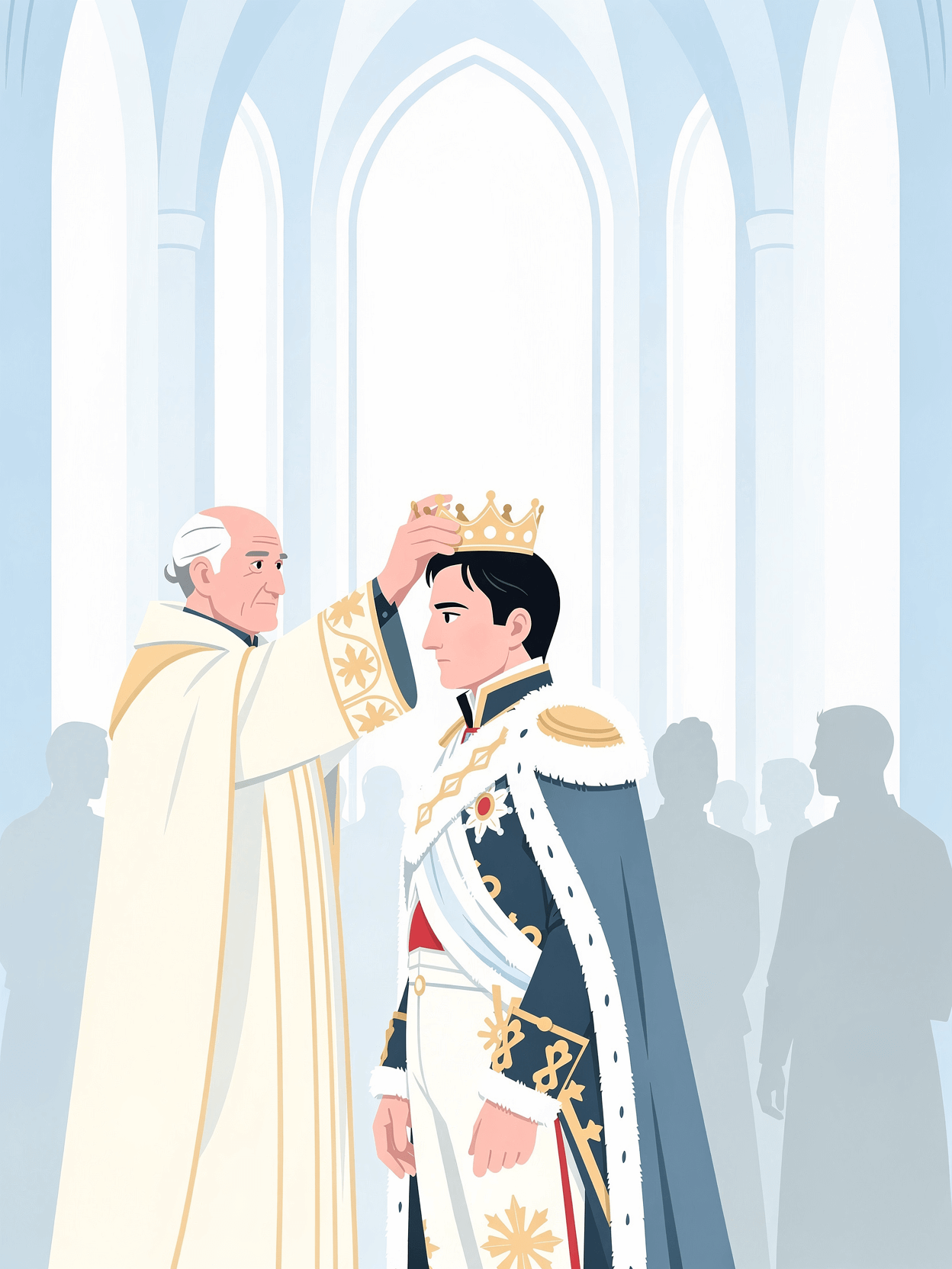 혁명 이후 혼란스러웠던 프랑스 국민은 '강력한 리더'를 원했습니다. 나폴레옹은 이 기회를 놓치지 않고 권력을 잡았고, 1804년에는 스스로 황제의 관을 머리에 썼습니다. 변방의 장교가 한 나라의 주인이 된 순간이었죠.