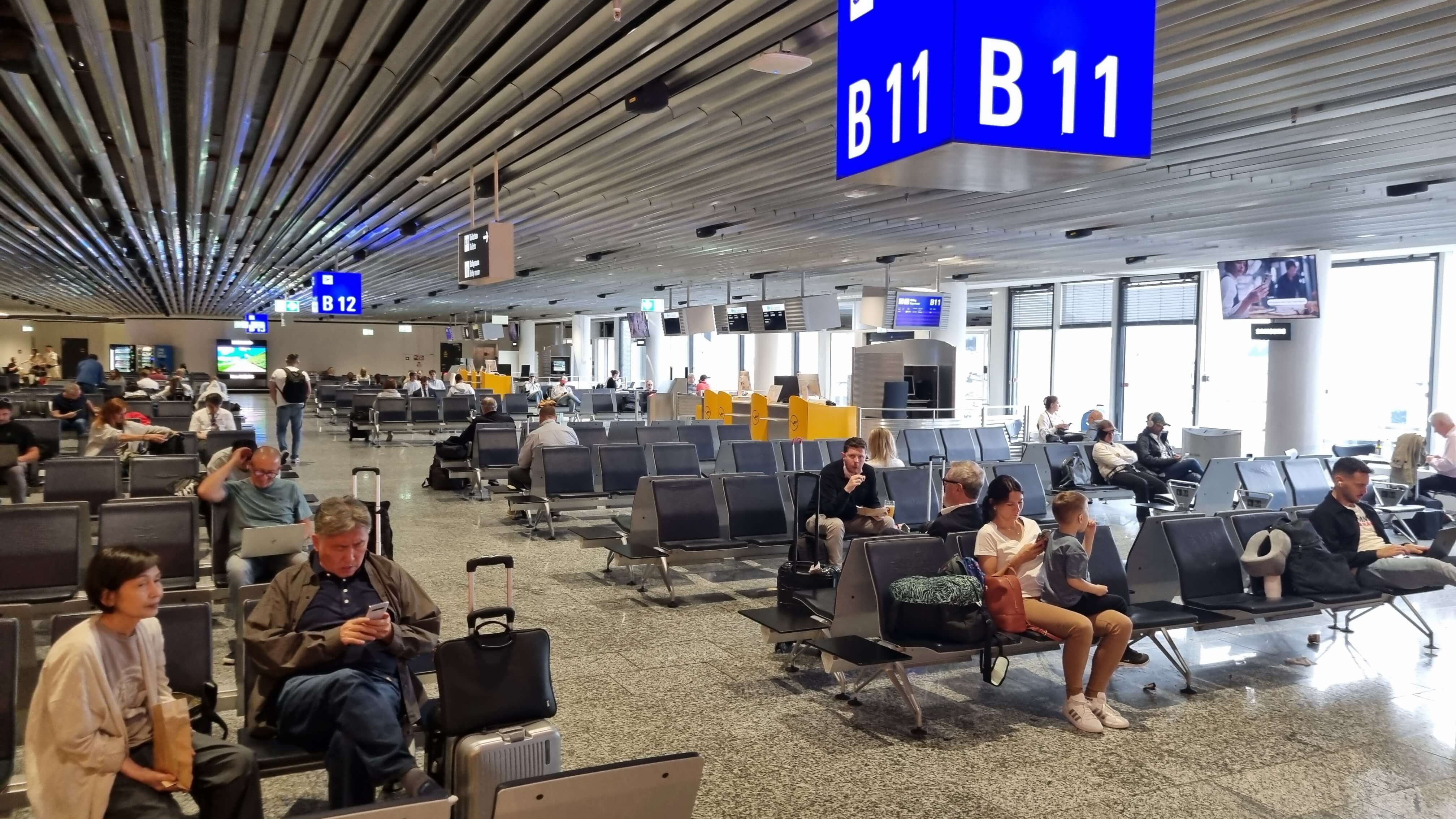 한국에서 출발한 비행기가 연착되며 프랑크푸르트 공항에 도착하니 환승시간이 조금 빠듯했는데, 다행히 서둘러 움직여서 잠깐의 여유가 생겼어요. 그래서 잠시 앉아 숨을 돌릴 수 있었습니다.