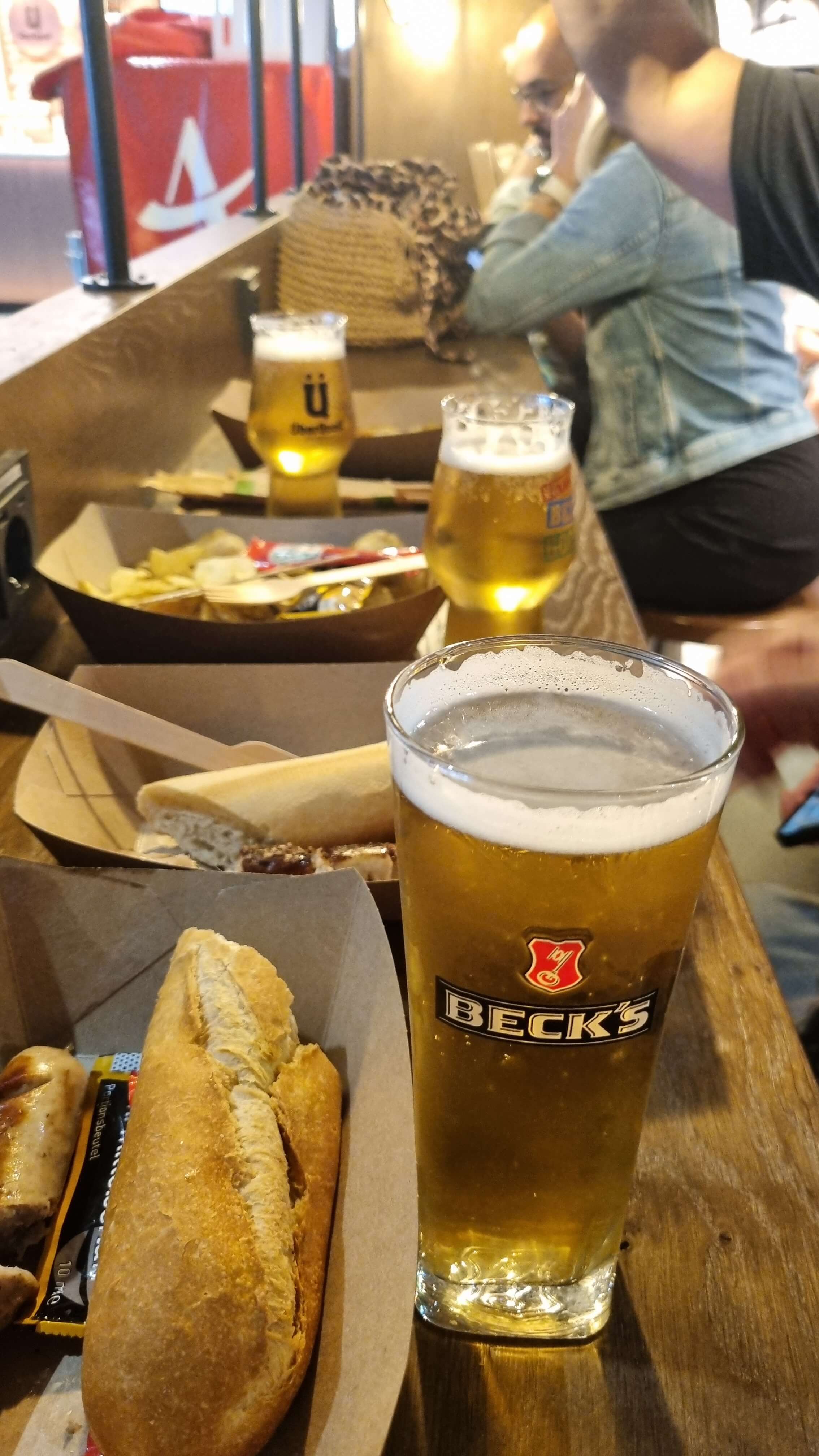 나름 독일 땅을 밟았는데, 그냥 가기에는 너무 아쉬워서 탑승 게이트 앞에 위치한 작은 푸드코트에서 독일 소세지와 맥주를 구매해 간단히 식사를 했습니다. 짧은 시간이었지만, 독일의 맛을 느낄 수 있어 너무 만족스러웠어요^^