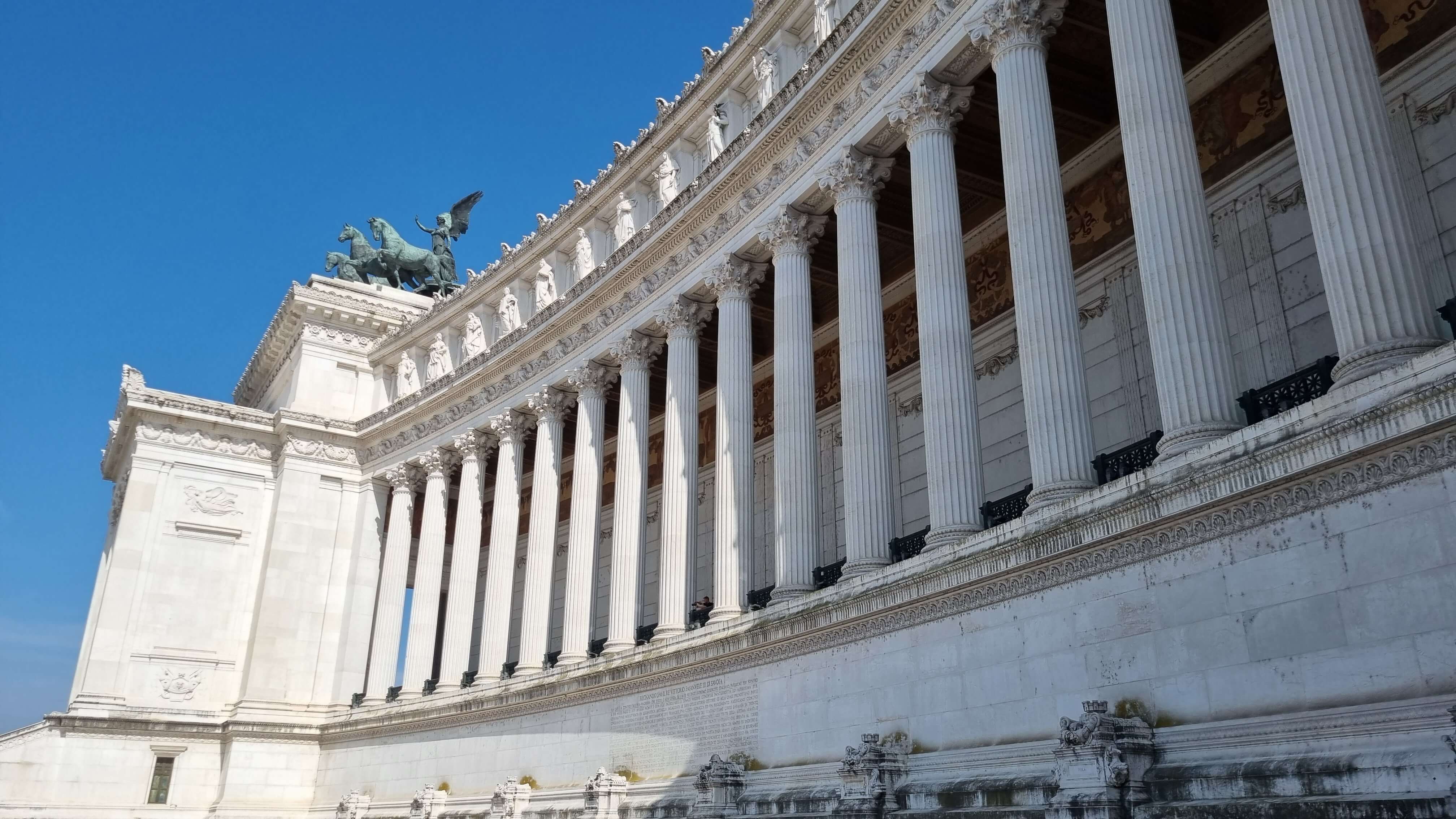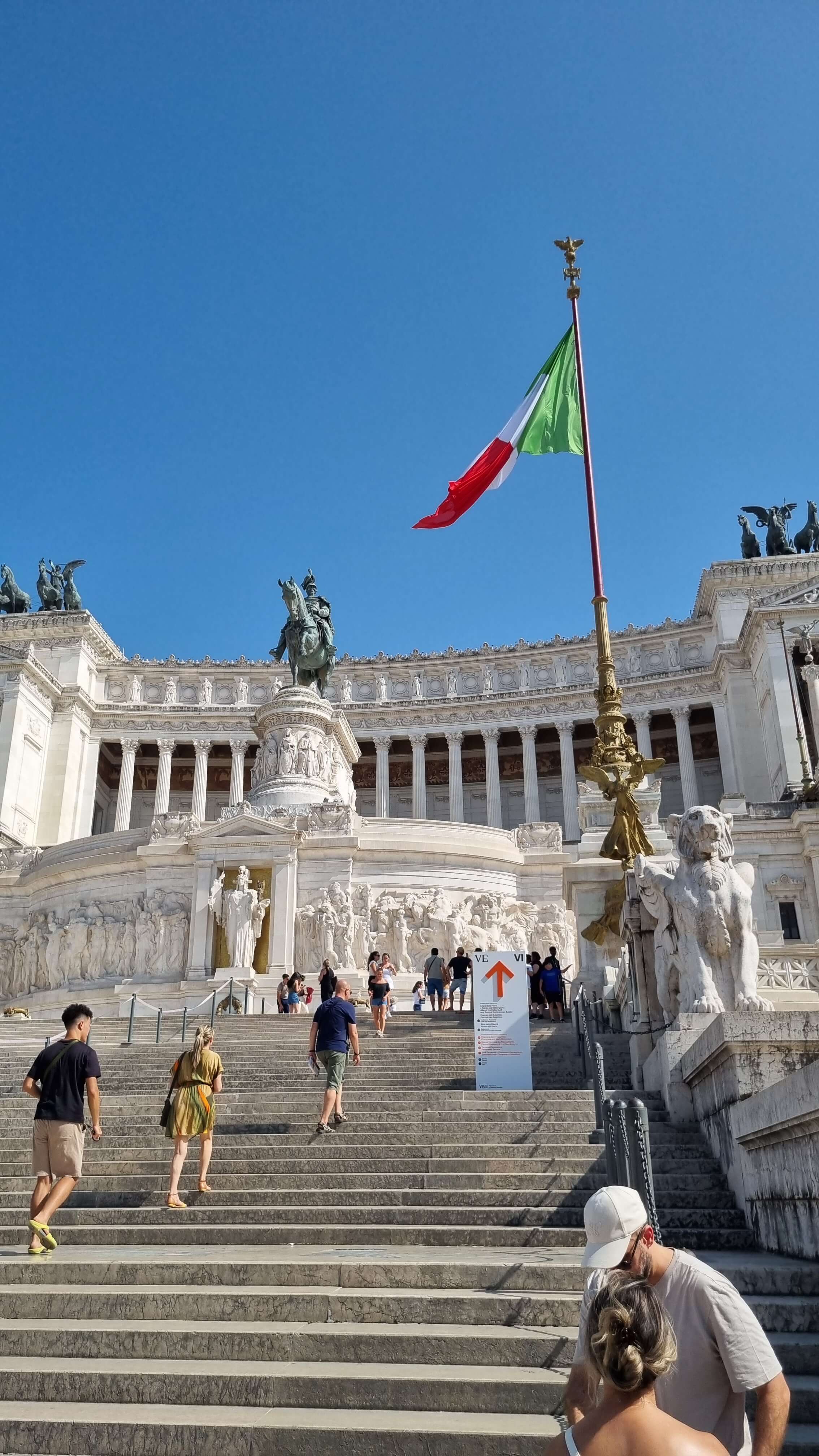 점심 후 방문한 곳은 비토리오 에마누엘 2세 기념관. 이탈리아 통일의 상징으로 지어진 이 기념관은 외관만 봐도 정말 압도적이었습니다. 흰 대리석 기둥과 웅장한 조각상들, 말 탄 왕의 동상이 인상 깊으며, 입장 시 위쪽 테라스에서 로마 시내를 내려다보는 것도 가능합니다.