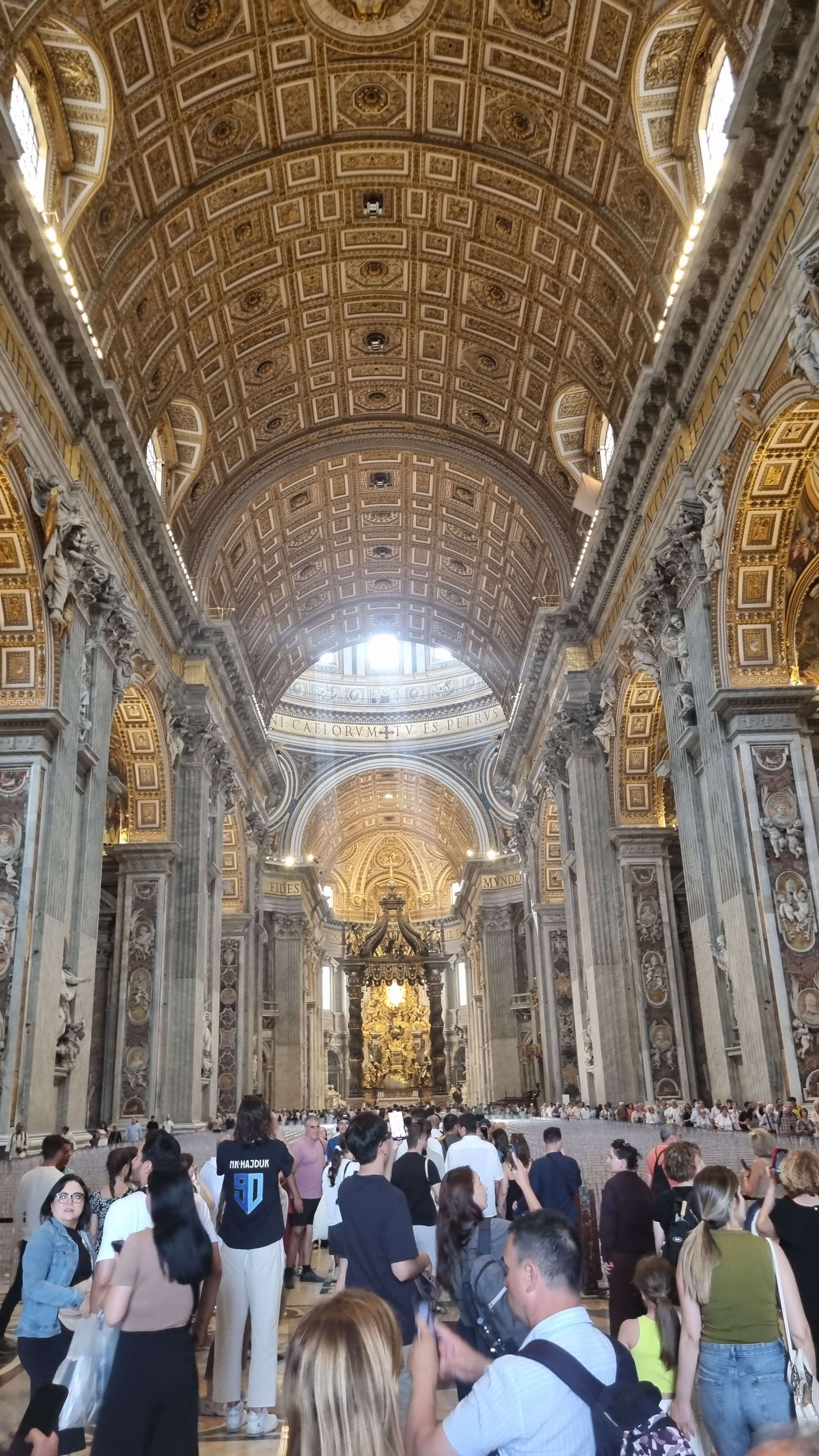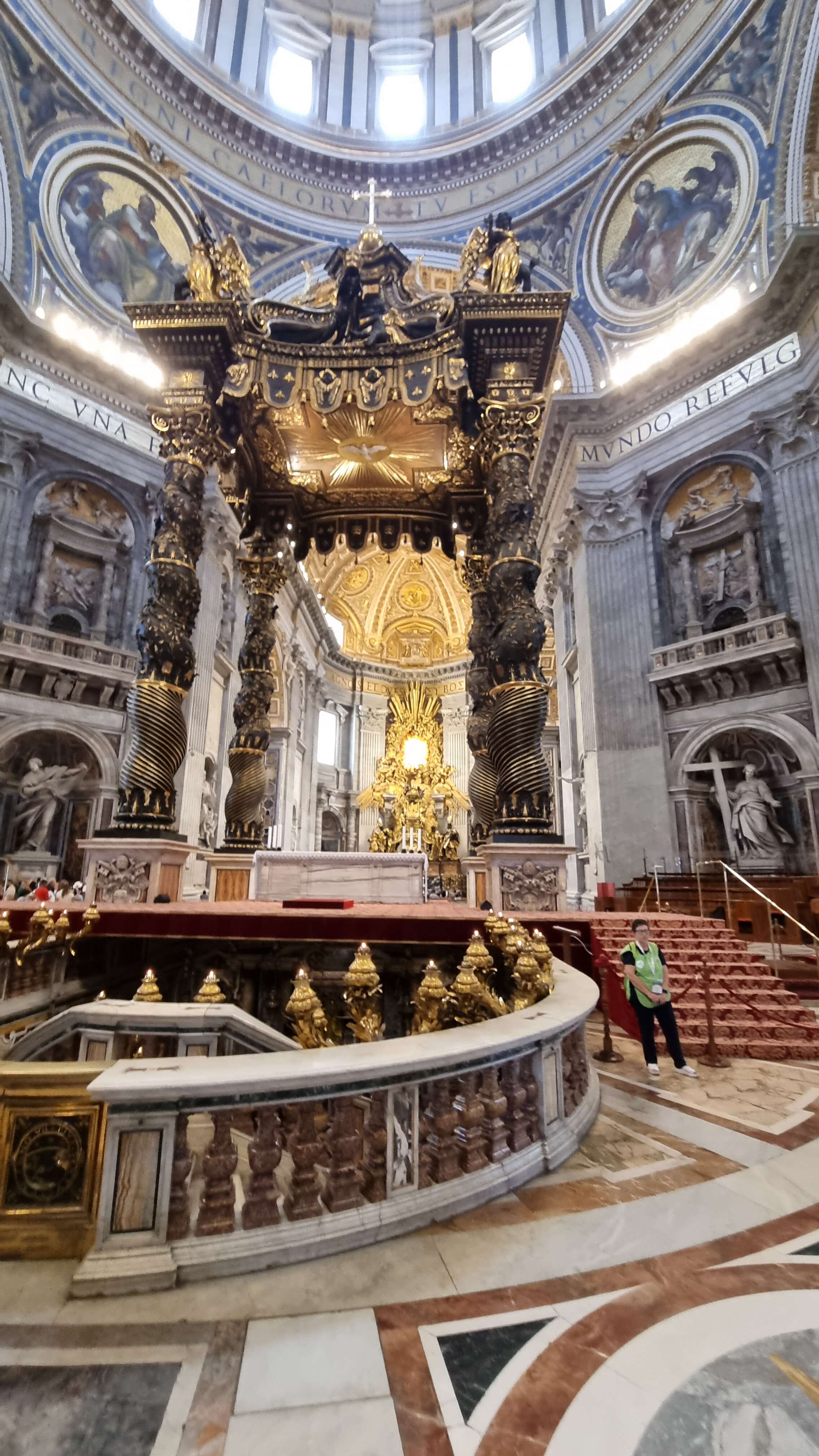 성 베드로 성당은 세계 최대 규모의 가톨릭 성당이며, 미켈란젤로가 설계에 참여한 돔과 베르니니의 청동 천개(발다키노), 그리고 성 베드로의 무덤 위에 세워진 의자 형상의 주교좌(Cathedra Petri)가 유명합니다. 입장은 무료이지만, 돔 전망대는 유료이니 참고해주세요.