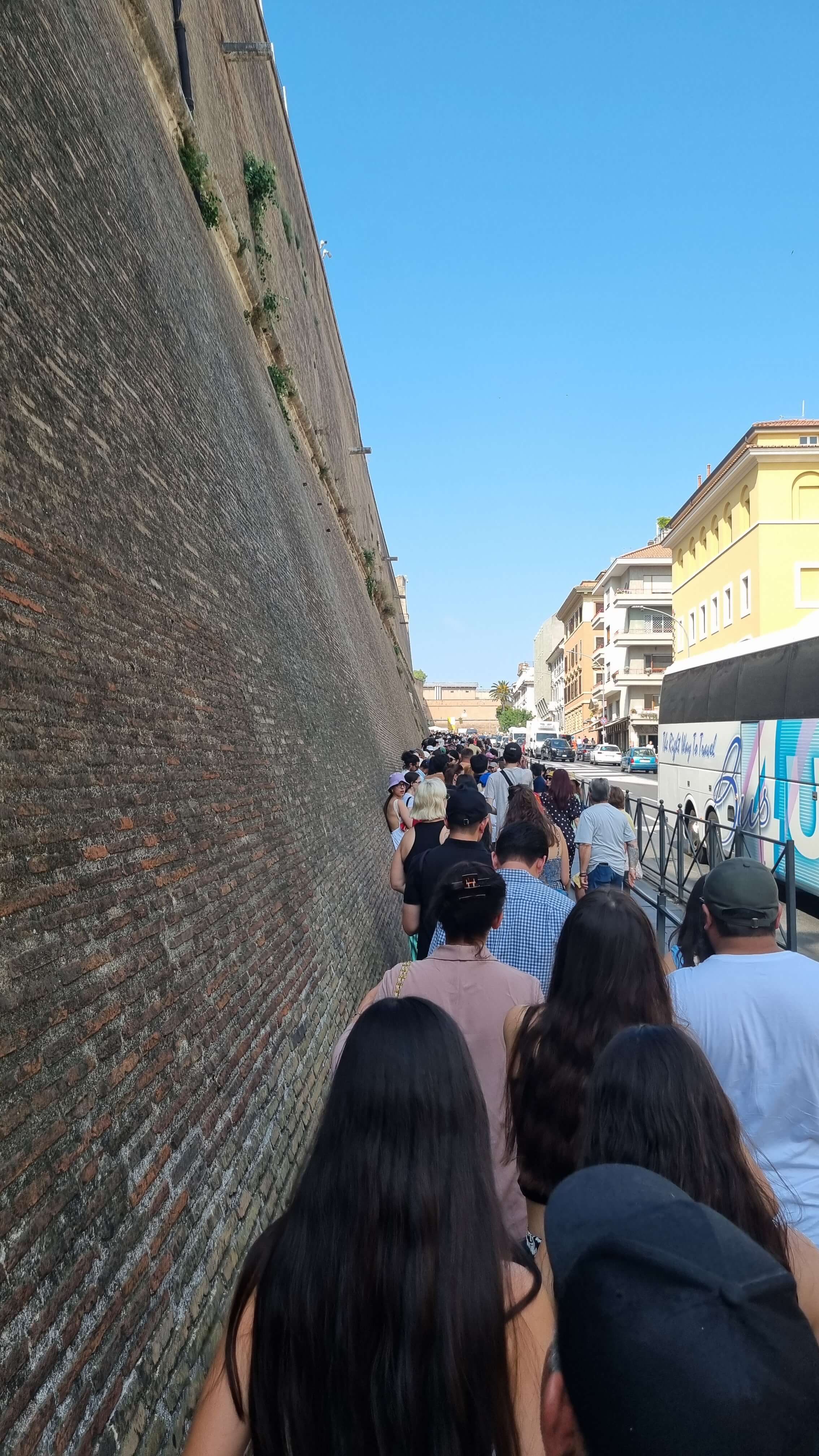 바티칸 미술관은 세계 3대 미술관 중 하나로, 라파엘로의 '아테네 학당'과 미켈란젤로의 '천지창조'로 유명합니다. 입장권은 사전 예약이 필수이며, 만약 예약을 하지 못하면 아래 사진처럼 엄청난 줄을 기다려야 됩니다. 수개월 전부터 예약이 꽉 차있어서 사전 예약이 힘들 수도 있는데, 저희처럼 포기하지 않고 당일 아침에도 예약을 시도해보면 운좋게 성공할 수도 있습니다^^