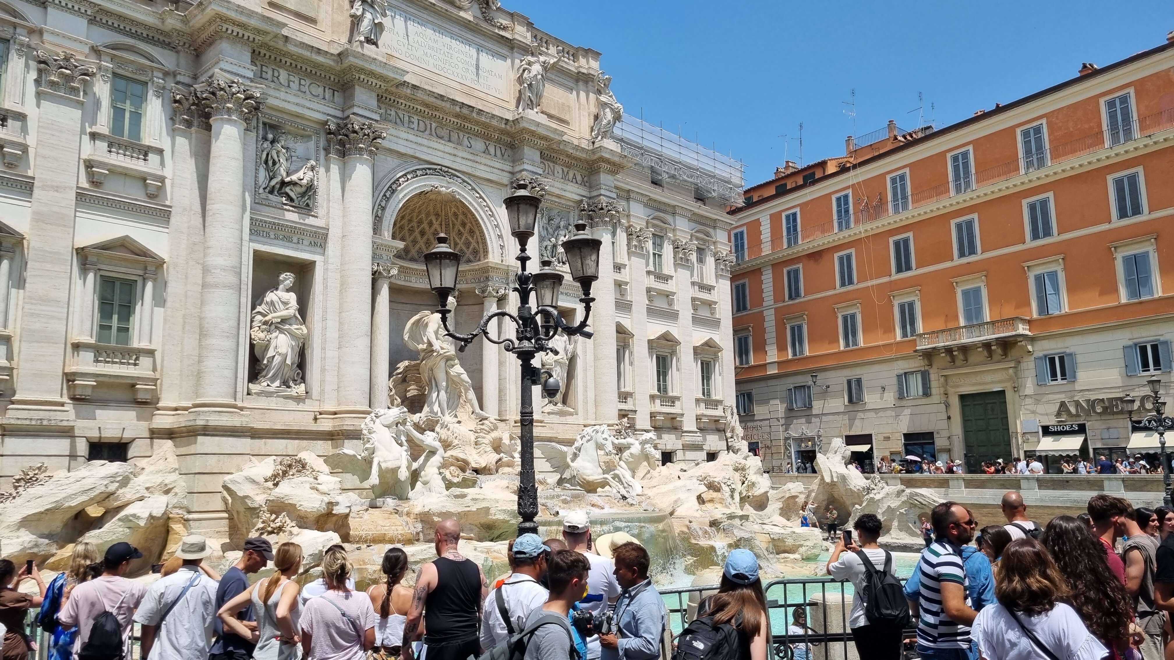 오전 마지막 일정으로 들른 곳은 트레비 분수입니다. 영화 ‘라 돌체 비타’로 유명해진 이곳은 로마 관광 필수 코스 중 하나입니다. 분수 앞에는 정말 많은 인파가 있었지만, 시원하게 뿜어져 나오는 물소리를 들으며 잠시 더위를 식히기엔 딱 좋았습니다.