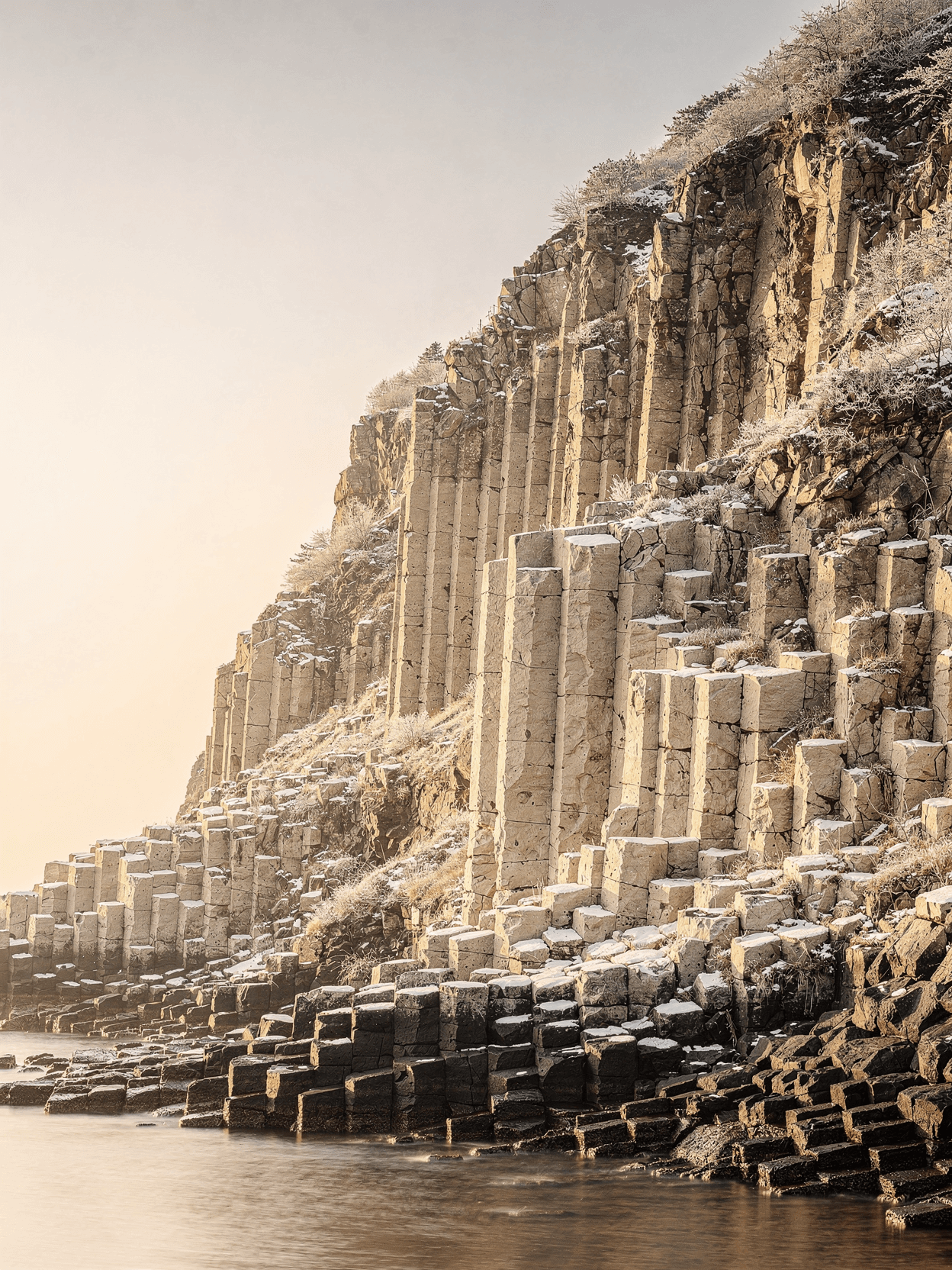 주상절리길에 들어서자 가장 먼저 눈에 들어온 것은 수직으로 뻗은 절벽의 선이었습니다. 화산 활동으로 형성된 주상절리는 겨울 햇빛을 받으니 윤곽이 더 또렷하게 드러났습니다. 눈이 쌓인 길과 검은 암벽의 대비가 인상적이었고, 실제로 마주하니 사진보다 훨씬 묵직하게 느껴졌습니다.
