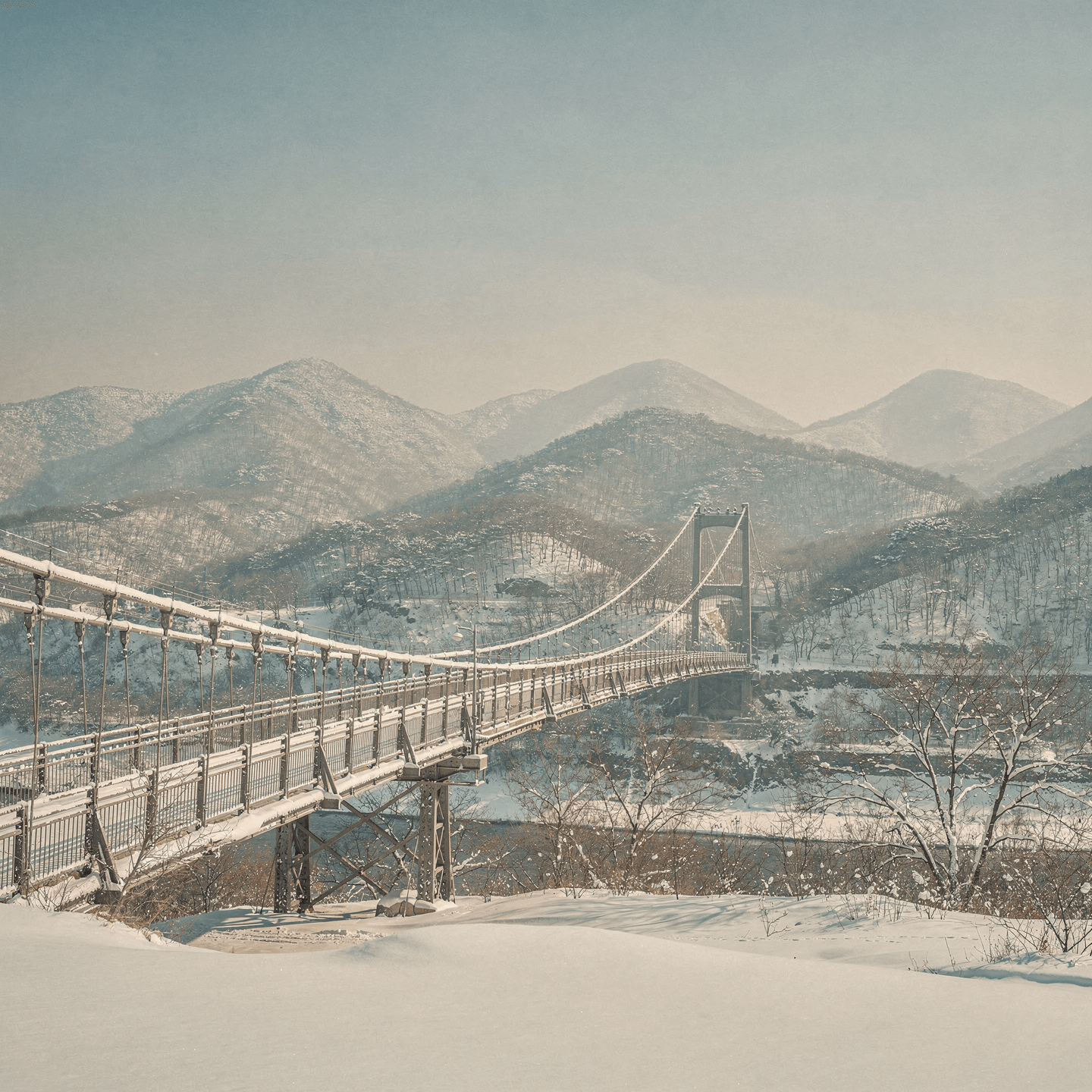 시간 여유가 있다면 Y자형 출렁다리를 건너 은하수교까지 이어지는 산책로를 걸어보세요. 겨울의 찬 공기를 마시며 걷는 이 길은 경사가 완만해서 누구나 쉽게 걸을 수 있습니다. 다리 위에서 내려다보는 풍경도 멋지지만, 멀리서 다리 전체를 조망하며 걷는 맛도 훌륭하거든요.
