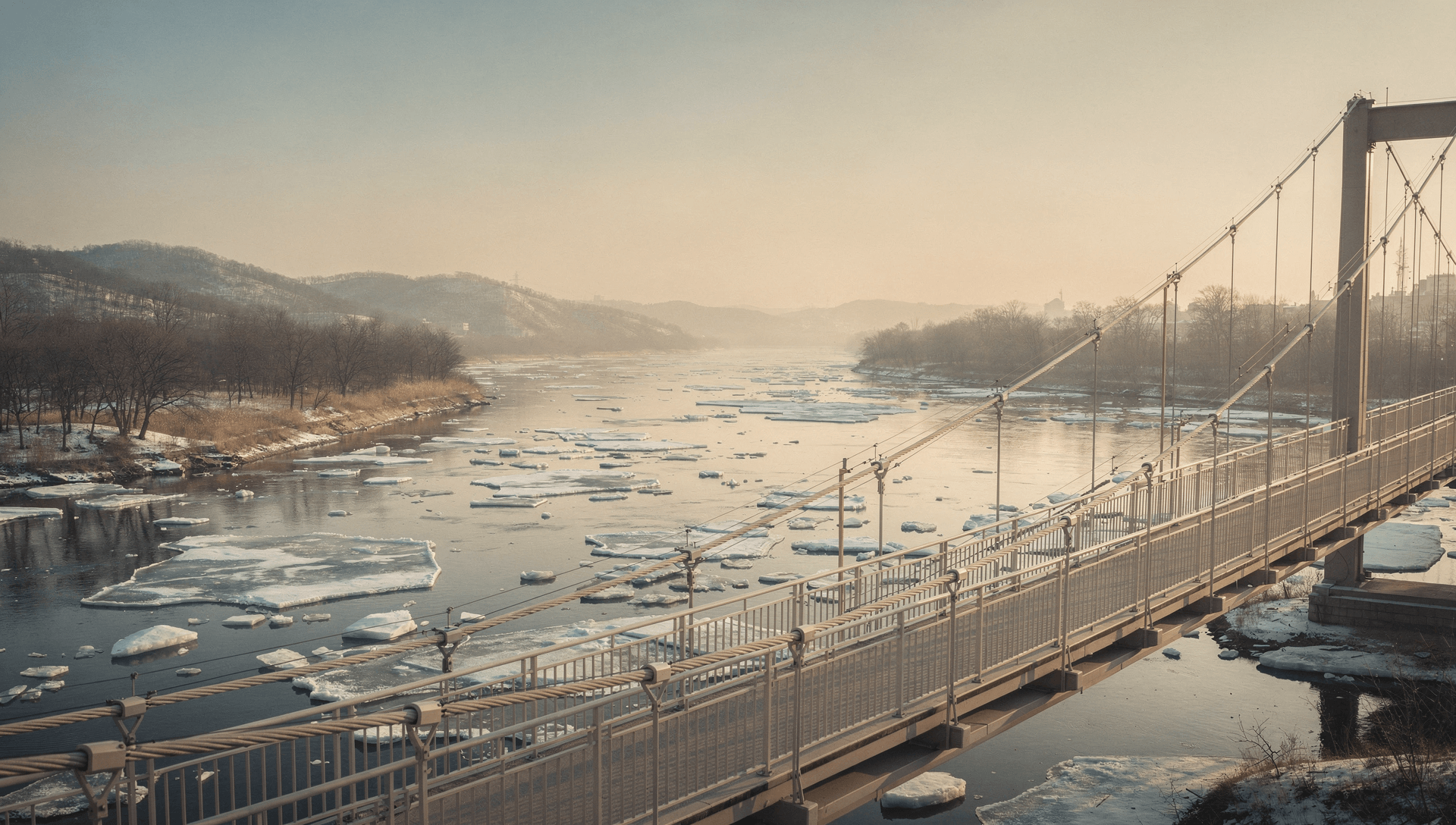 겨울 철원은 '겨울왕국'이라 불릴 만큼 춥습니다. 특히 강 위에 떠 있는 다리는 바람을 막아줄 시설이 전혀 없어서 철저한 준비가 필요해요.