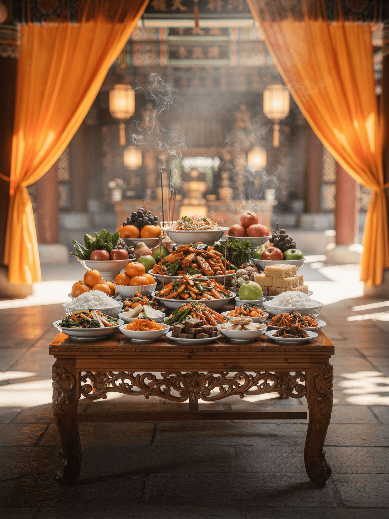 가장 큰 원칙은 간단합니다. 살생을 피하는 의미로 육류·생선을 올리지 않는 것이 기본입니다.