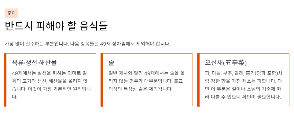 - 육류/생선/해산물: 49재에서는 보통 올리지 않습니다.