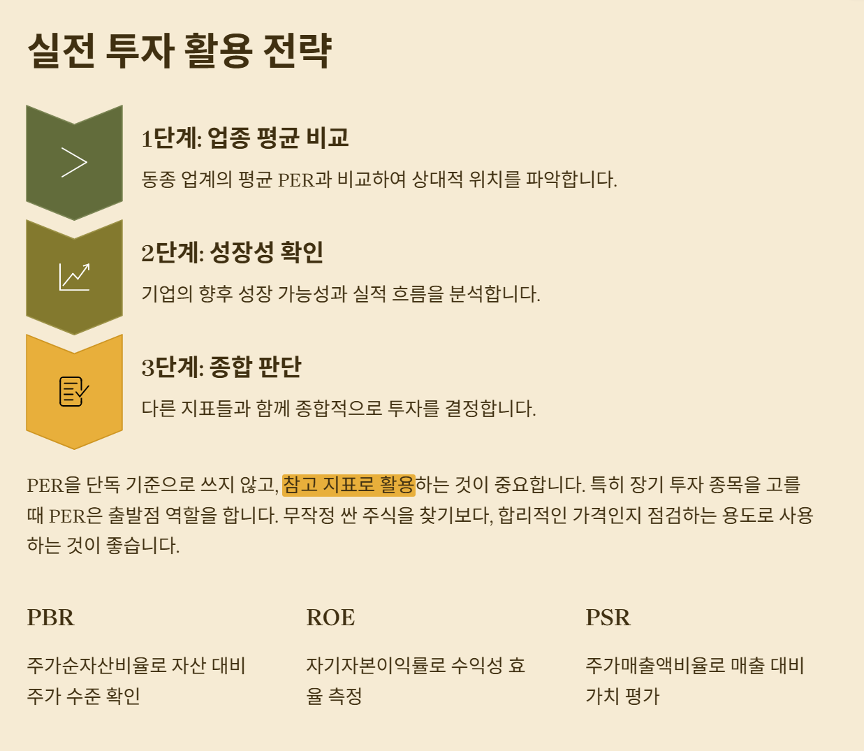 PBR, ROE 같은 지표를 함께 보니 판단이 훨씬 입체적이 됐다. PER만 볼 때보다 실수가 줄어들었다고 생각했다.